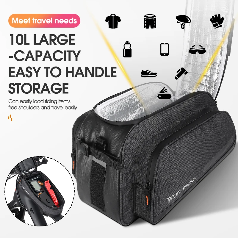 «WEST BIKING 2 In 1 Bicycle Bag 10L Large Capacity Insulated Trunk Bag + 1.5L Touch Screen Phone Bag MTB Bike Cycling Pannier» по лучшей цене на рынке! Всего за 41$ (3895рублей)