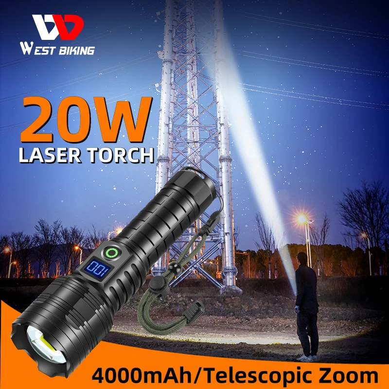 WEST BIKING Ultra Bright LED Flashlight Waterproof Outdoor Torch Zoomable Light Power Bank Hunting Multi-function USB Charging - Купить с бесплатной доставкой