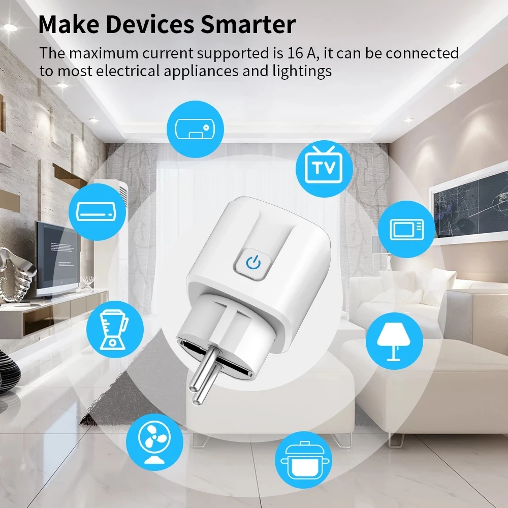 "WHUILOT New Smart Socket Plug EU 16A Tuya WIFI Smart Home Automation Monitor Timer Electronic Outlet Support Google Home Alexa" * Buy Now Just For 18$