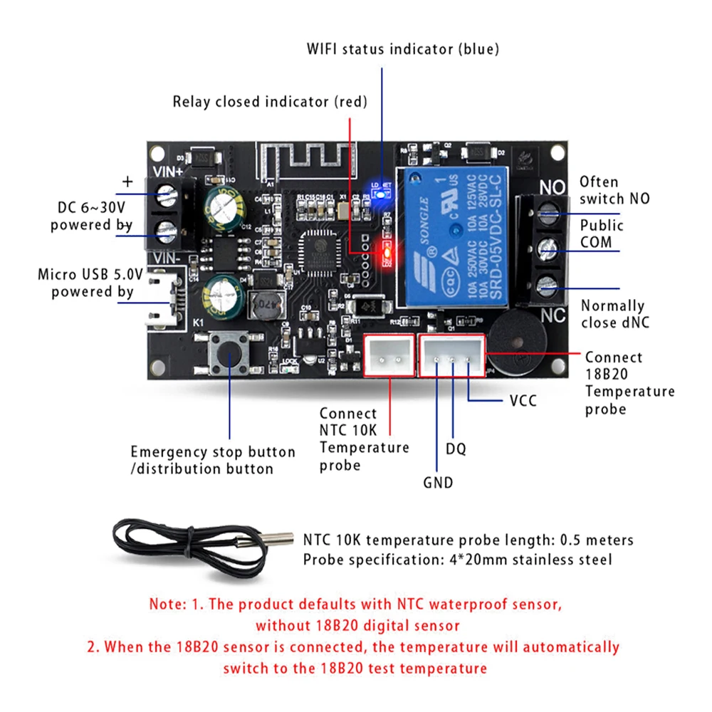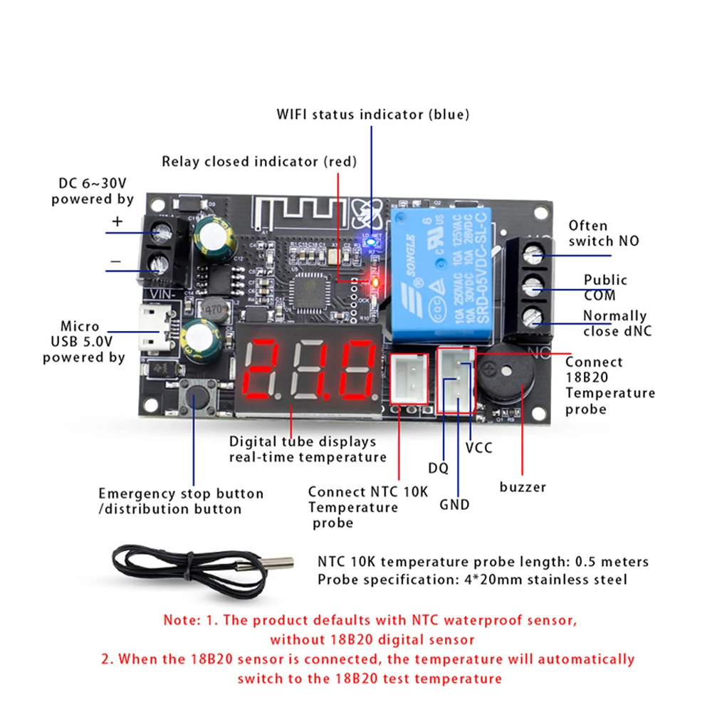 irMMEXfcRHere you can buy WIFI Remote Thermostat DC6-30V High Precision Temperature Controller Cooling and Heating Mode APP Temperature Collection Module with free delivery to your post office.