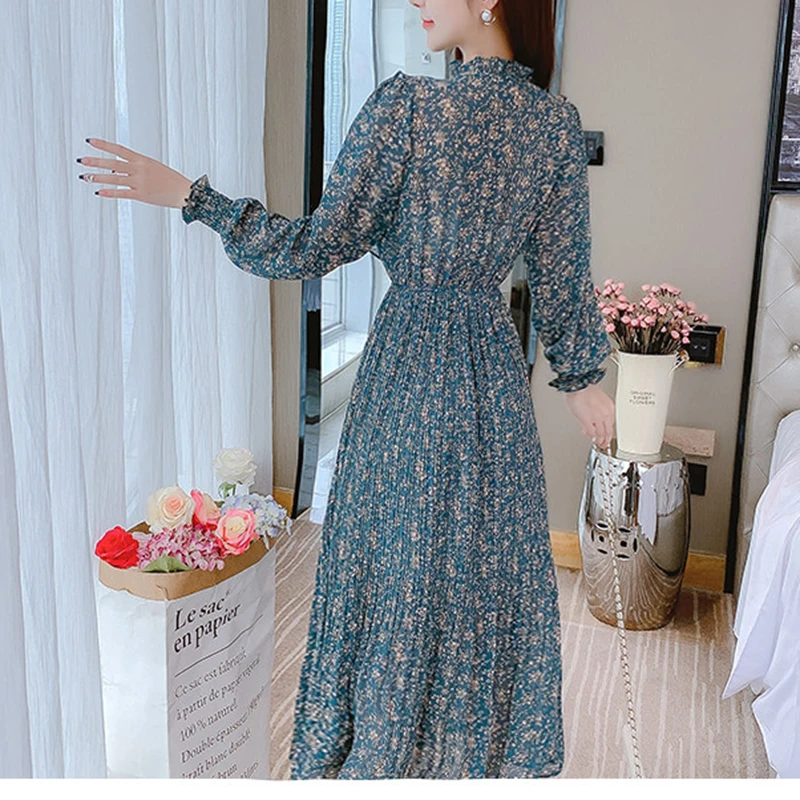 «WKFYY Bohemian Sweet Chiffon Flower Print Ruffled Lace Up Bow Pearl Button Elastic Waist Slim A-Line Maxi Mid Long Dress D4207» по лучшей цене на рынке! Всего за 38$ (3610рублей)