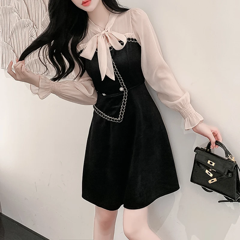 «WKFYY Elegant Balck Corduroy Mesh Spliced Bow Petal Sleeve Diamond Buttons Asymmetrical A-Line Slim Maxi Knee Long Dress D4197» по лучшей цене на рынке! Всего за 39$ (3705рублей)