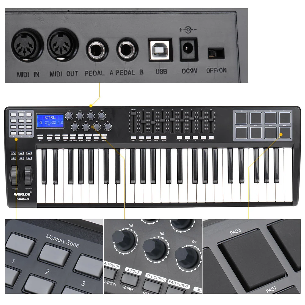 VBSpjKtNvHere you can buy WORLDE PANDA49 Portable 49-Key USB MIDI Keyboard Controller 8 RGB Colorful Backlit Trigger Pads with USB Cable MIDI Controller with free delivery to your post office.