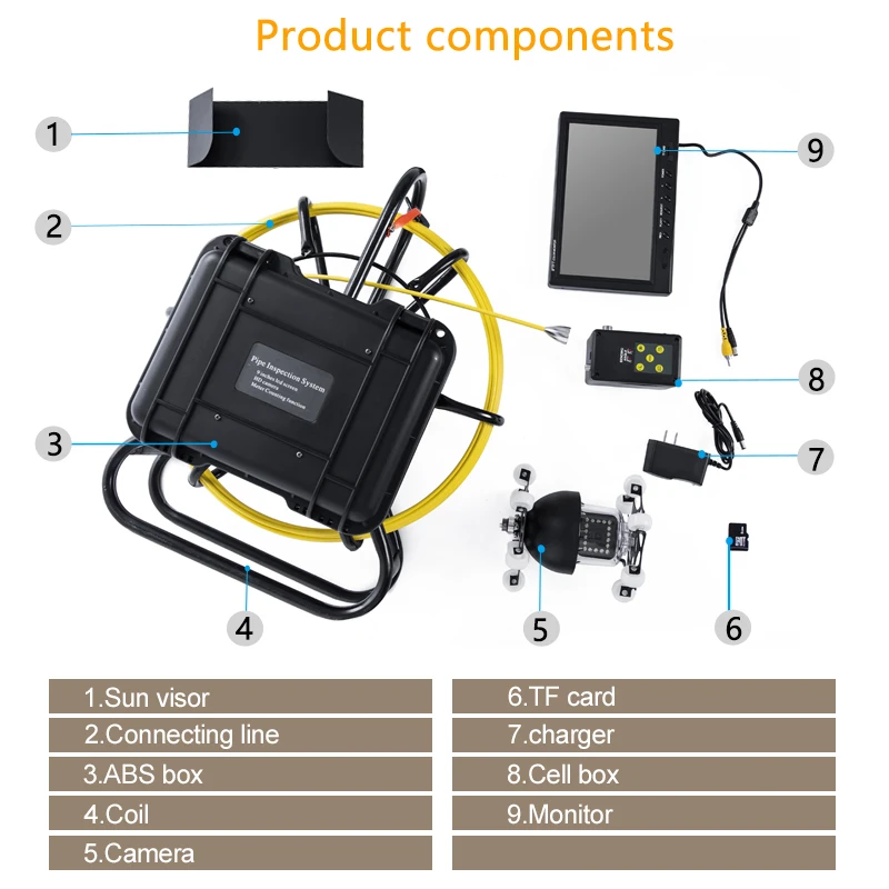 HraCqiERЗдесь вы сможете купить WP9600D Pipeline Endoscope Camera 9 Inch LCD 360 Degree Rotation 18 Adjustable LED Lights with Sliding Wheels 20/30/50M Cable с бесплатной доставкой до вашего почтового отделения.