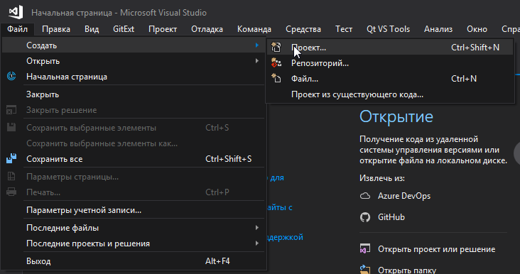 1-qadam) Visual Studioni oching va File->new->project bo’limiga o’ting