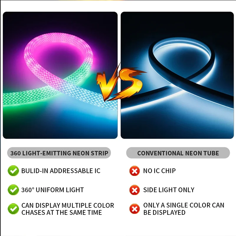 MWdGHFkWfHere you can buy WS2812B WS2811 DC5V Round Reticulate Pattern Silicone Light Tape 150Leds/m 360 Degree Smart RGBIC Flexible Neon LED Strip IP67 with free delivery to your post office.