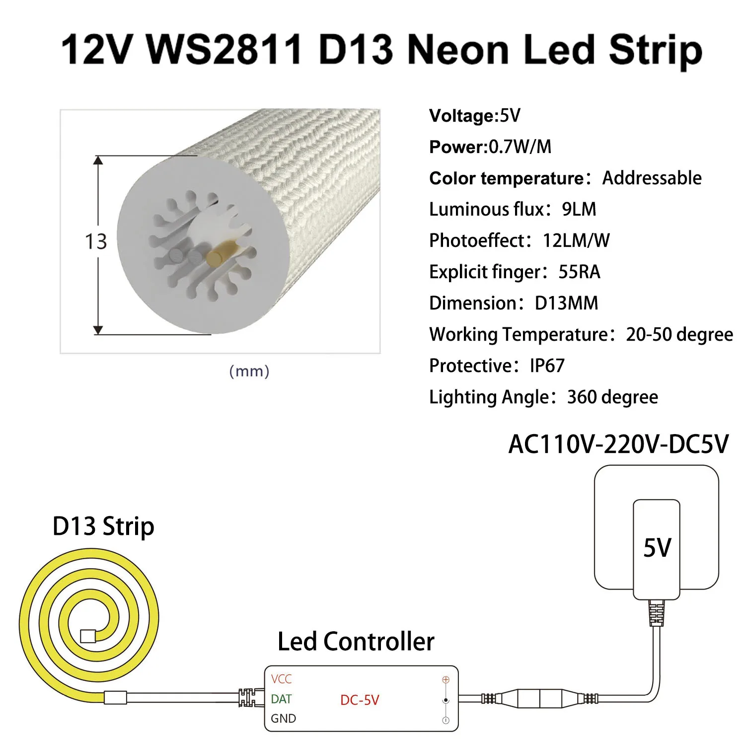 MGiHCZnwHere you can buy WS2812B WS2811 Neon LED Strip Round Reticulate Pattern 50Leds/m Smart RGBIC Flexible Silicone Light Tape IP67 DC5V with free delivery to your post office.