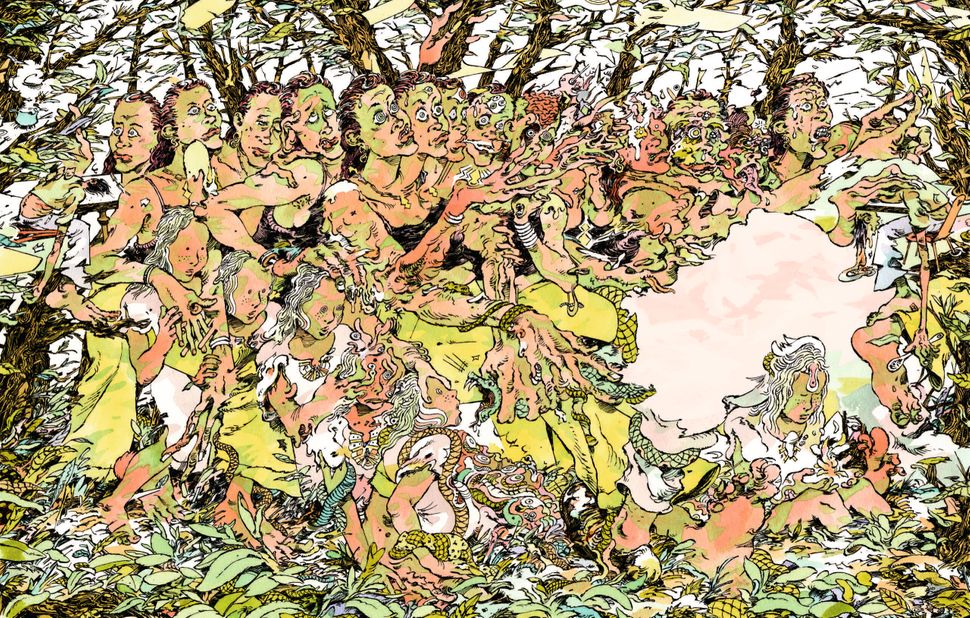 Kunstwerk von zwei milfs auf einem riesigen dong