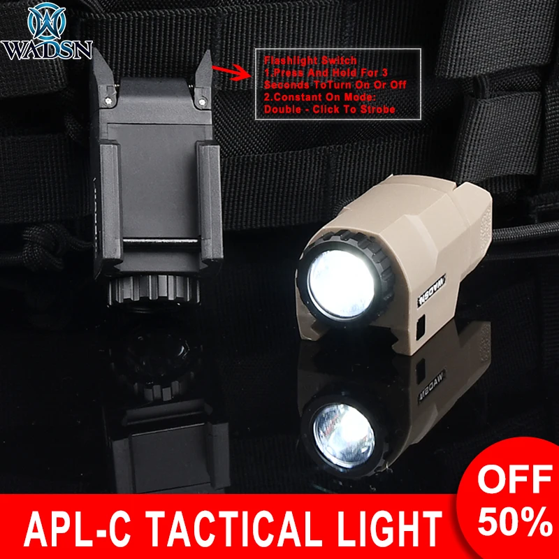 «Wadsn Tactical APL-C Pistol Flashlight APL Hunting Weapon Scout Light LED Constant Momentary Strobe Fit 20mm Rail Airsoft Gloc1» по лучшей цене на рынке! Всего за 39$ (3705рублей)