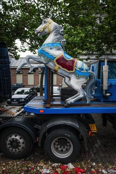 Laseczka w białych pończochach zapinana przez zapinana przez czarne konie