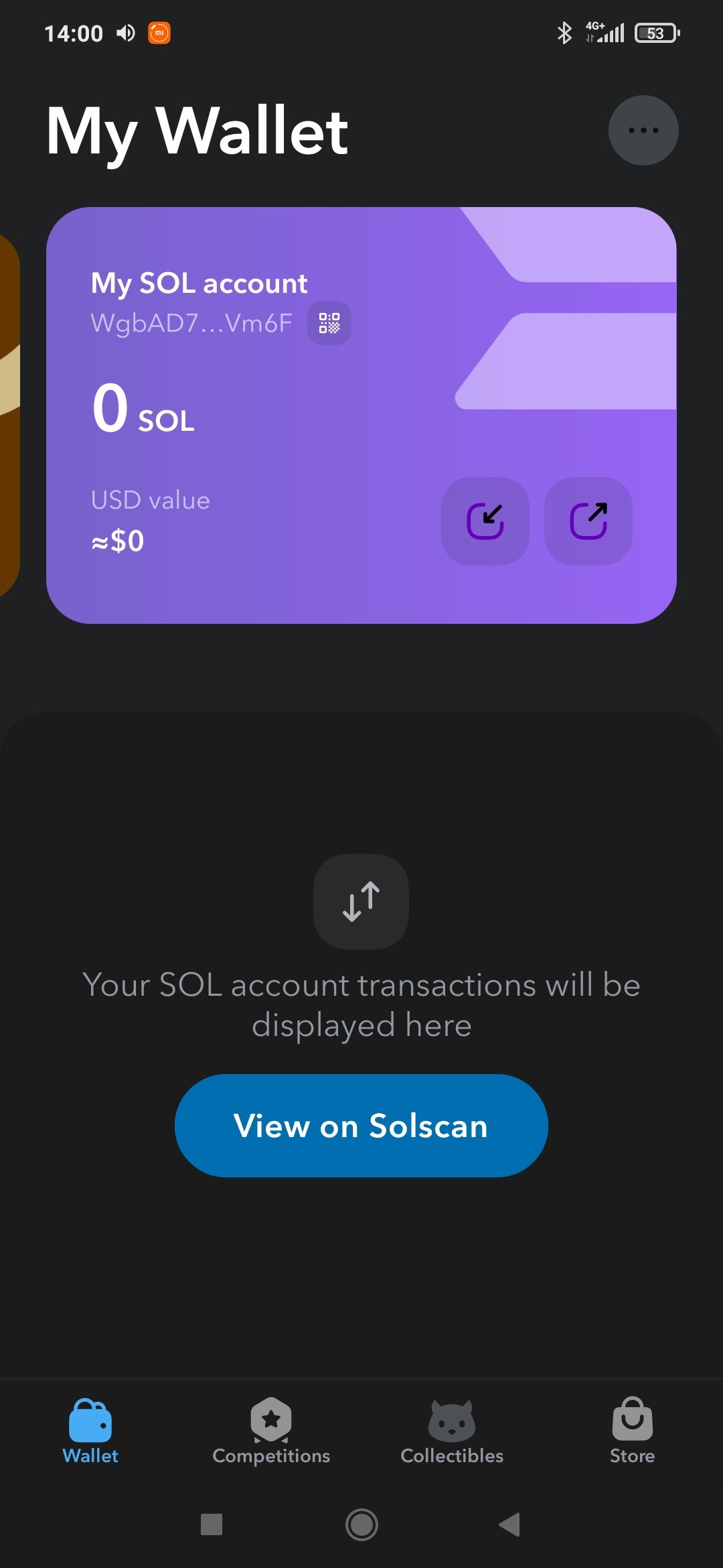 Фиолетовый раздел - My SOL account