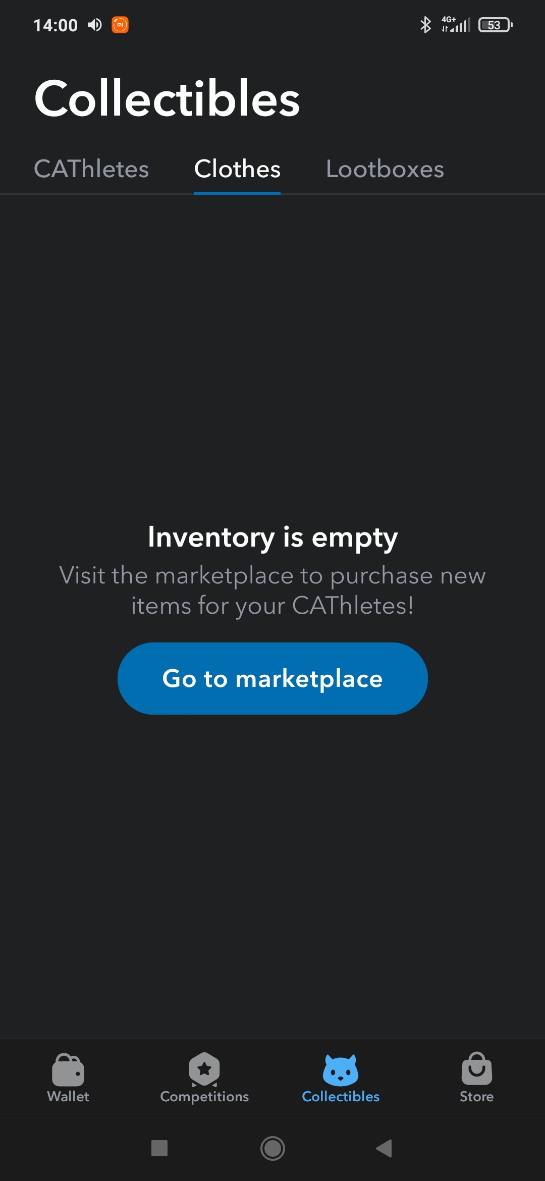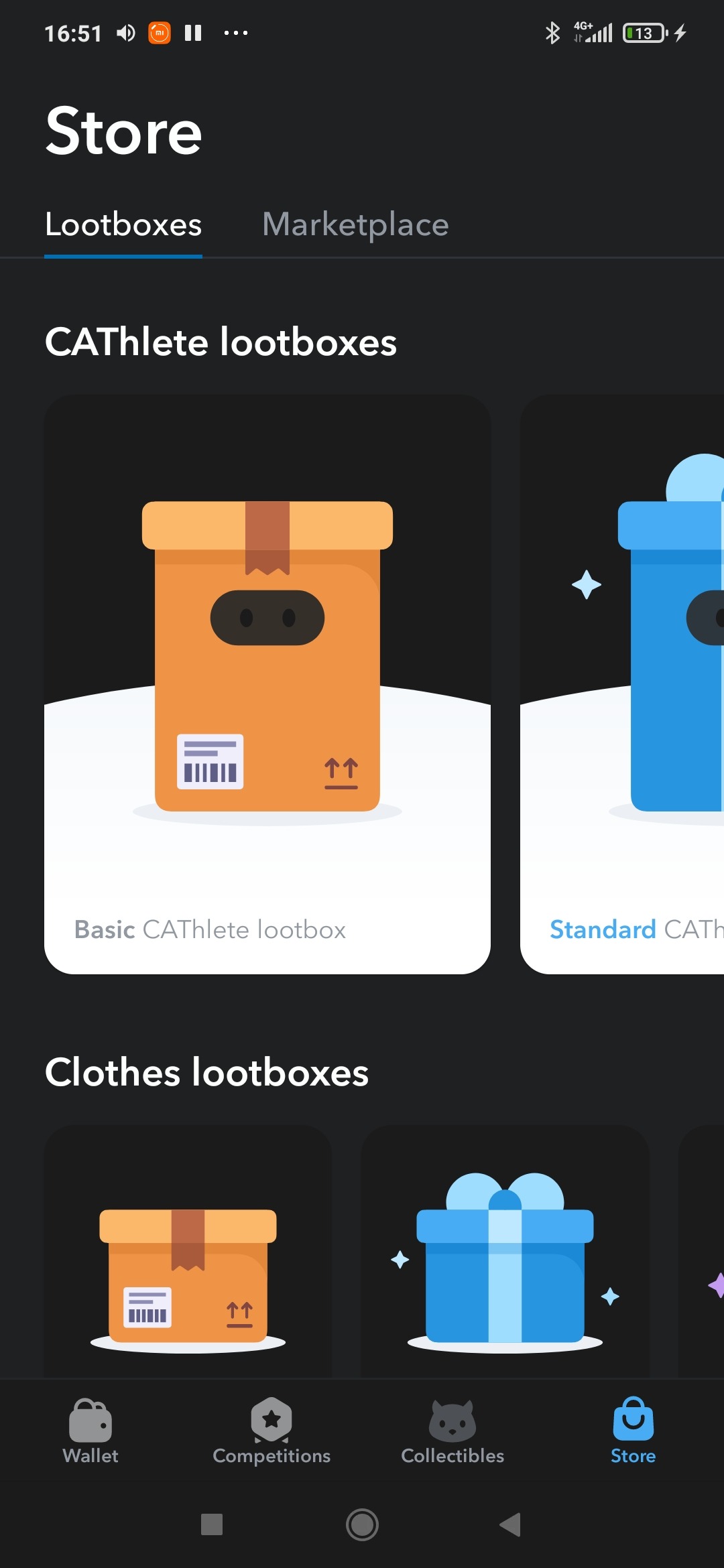 Эта вкладка также поделена на три части: CAThletes, Clothes, Lootboxes