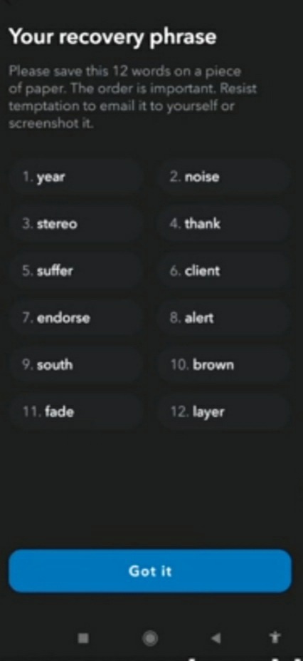 Теперь вам необходимо записать куда-нибудь вашу фразу восстановления