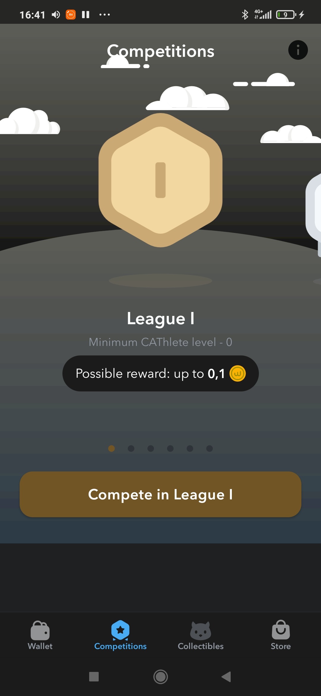 На этой вкладке вам предоставлены шесть лиг, на каждой лиге написано, какого уровня должен быть ваш катлет и сколько вы получите токенов за победу.