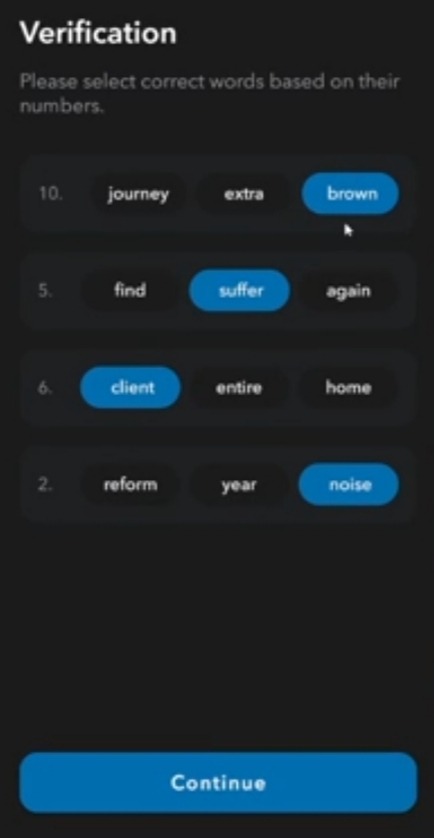 В следующем окне вам необходимо указать слова в соответствии с номерами, с которыми они были указаны