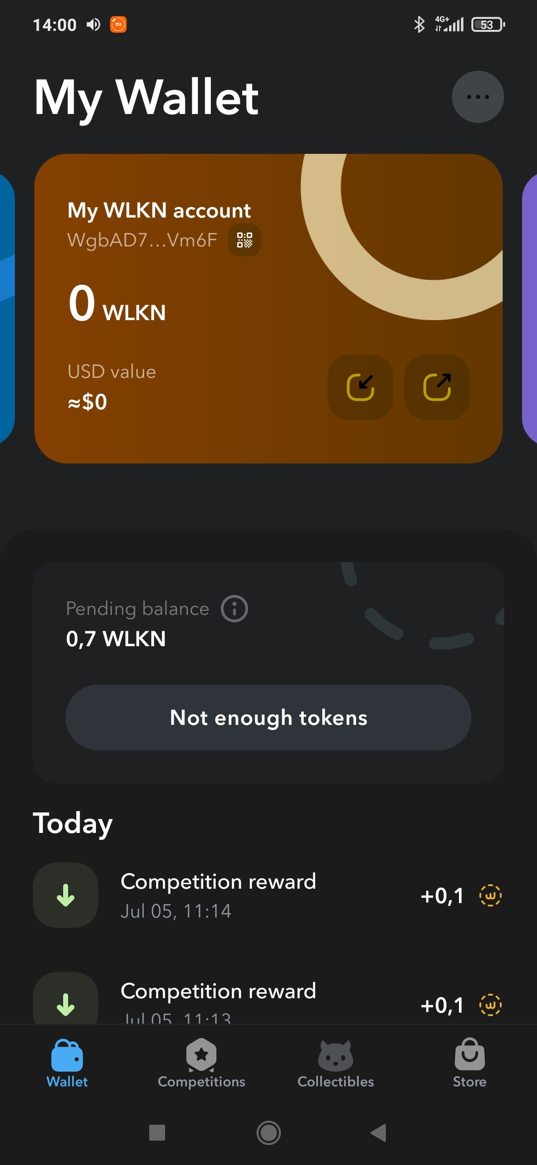 Pending balance показывает количество токенов, полученных с соревнований, которые позже можно перевести на ваш WLKN аккаунт. Подробнее про вывод токенов на биржу и их закупку можно узнать в нашем недавнем ролике про WALKEN