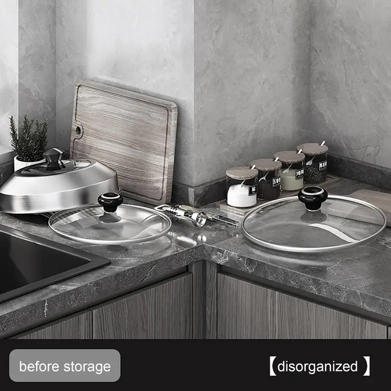Wall Mount Home Pot Lid Organizer Decorative Holder Rack Storage Iron Stand Delicate Pan For Lids 3-Tier Punching-free Rack - Купить с бесплатной доставкой