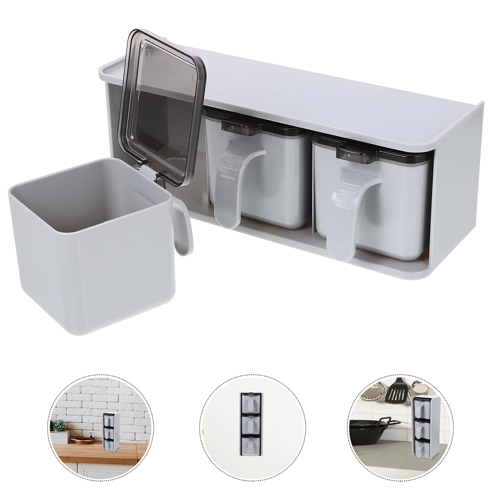 wVJbXqMnKFHere you can buy Wall Mounted Seasoning Box Decorations Home Divided Spice Container Household Compact Condiment Jar with free delivery to your post office.