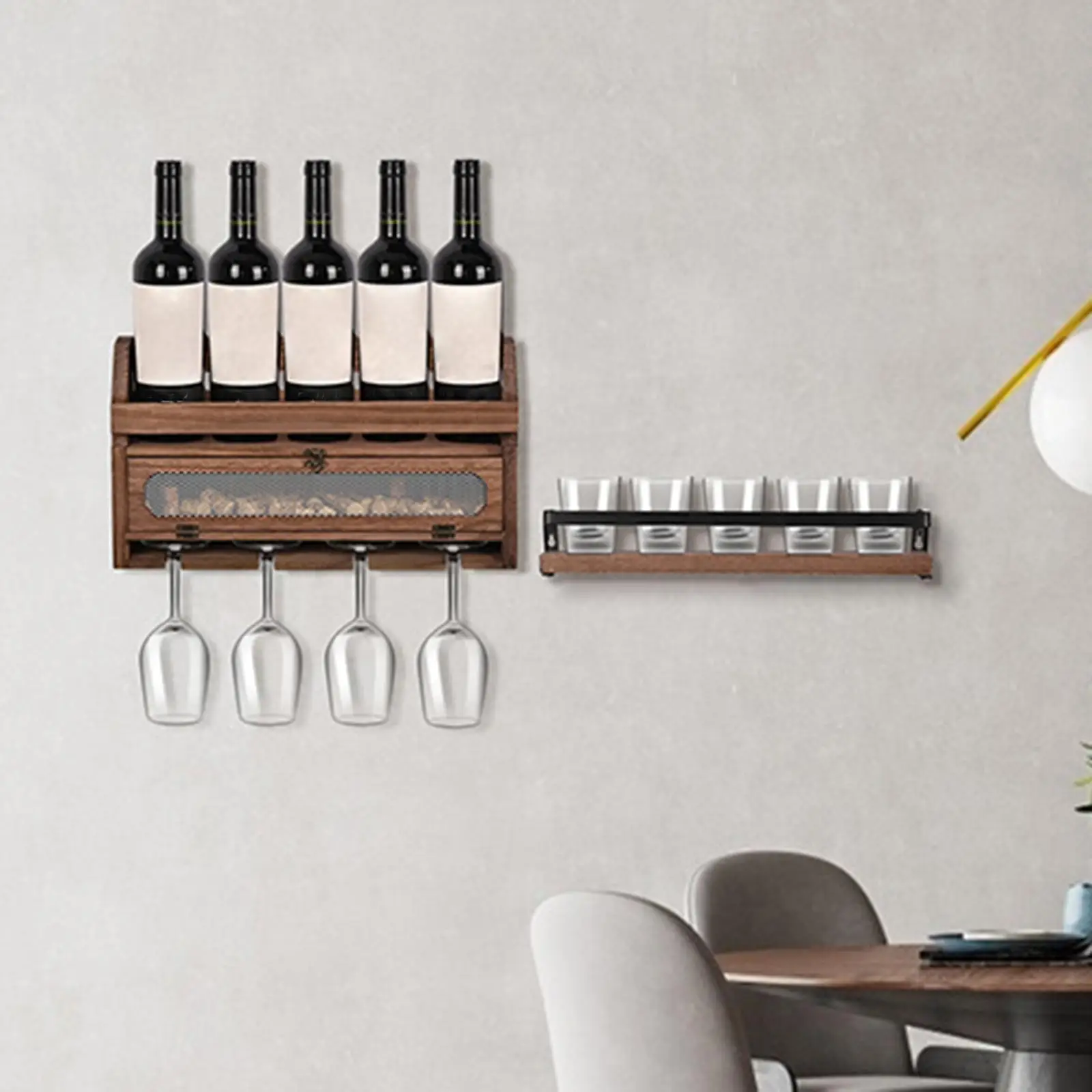 MqpixVyBfHere you can buy Wall Mounted Wine Rack Storage Shelf Bottle Glass Cork Holder Floating Rack Hanging for Dining Decor with free delivery to your post office.