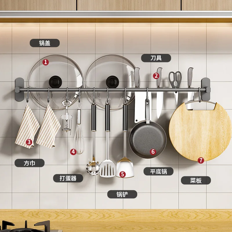 Wall-mounted Tool Holder Hook Hole-free Metal Wall-mounted Rod Stick Hook Rack Rack Hook Organizer Kitchen Pot Cover Frame - Купить с бесплатной доставкой