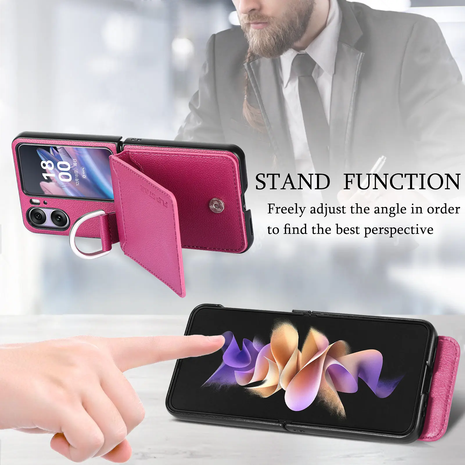 Wallet Case For Oppo Find N2 Flip Finger Ring Stand Lychee Print Card Insert Shockproof Multicolour Protective Leather Cover - Купить с бесплатной доставкой