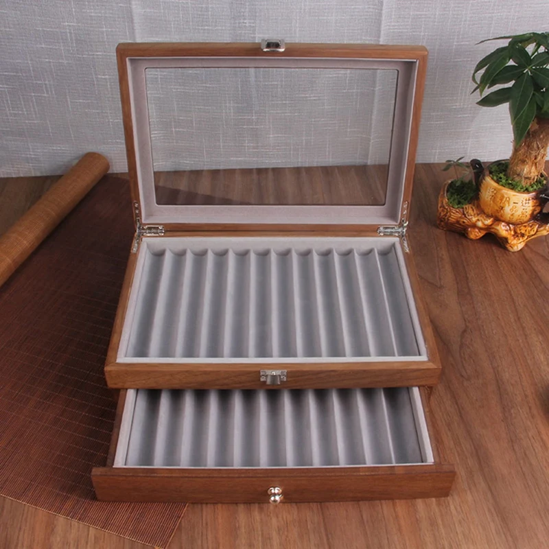 GZrqHNYuUHere you can buy Walnut Pen Storage Case Luxury 2 Layer Pen Display Organizer Transparent Window Fountain Box Pen-Collection with free delivery to your post office.