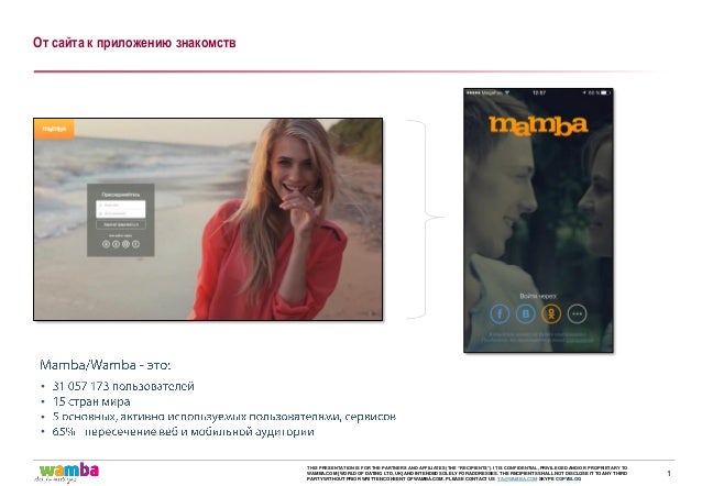 Mamba is Russia's leading dating site , and Wamba offers global users the same experience . With over 24-million users in more than 15-countries, Wamba is one of the world's leading dating sites . If you're interested in meeting people and having fun, the Wamba offers you a great venue . At Wamba , you can interact with other people looking to find a partner and decide who you want to date . Wamba focuses on creating a platform for everyday people .