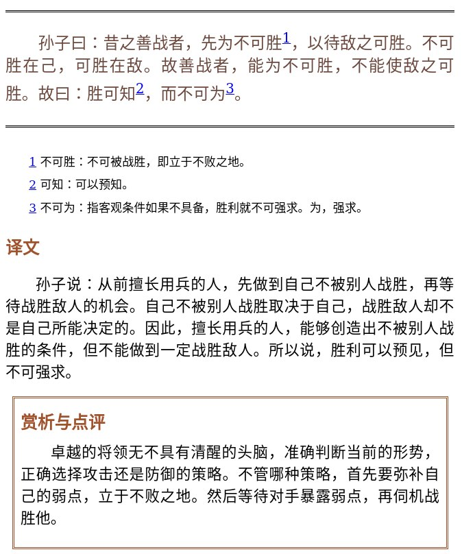 我之前在看《晚点》的文章时,把王兴的那段话摘录到了日记里。今天我想看看过去我对战争是什么看法,搜到了这条记录。根据语境,我大概了解王兴的意思,但是我不明白《孙子兵法》里“不可胜在己,可胜在敌”究竟是什么意思。
