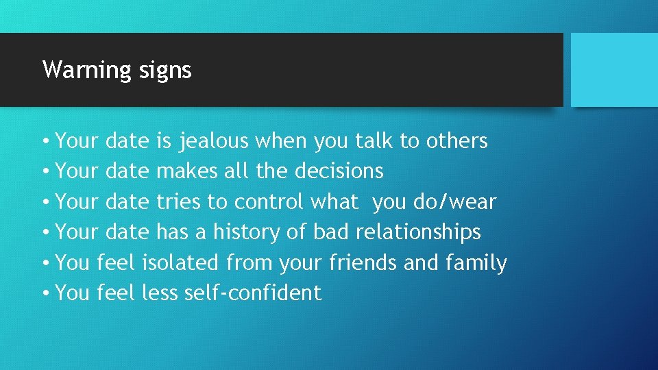 Warning signs in dating relationships