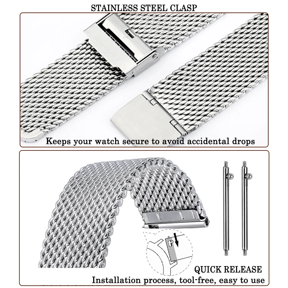 «Watch Band Stainless Steel Metal Mesh Quick Release Strap Milanese Bracelet for Replacement Easy Resize Watch Clasp Waterpoof» по лучшей цене на рынке! Всего за 15$ (1425рублей)