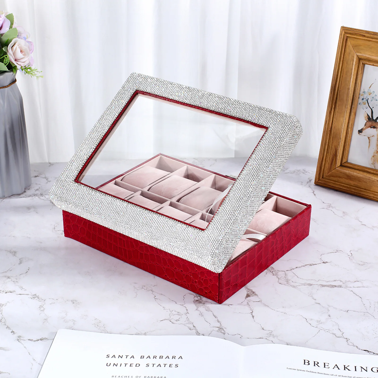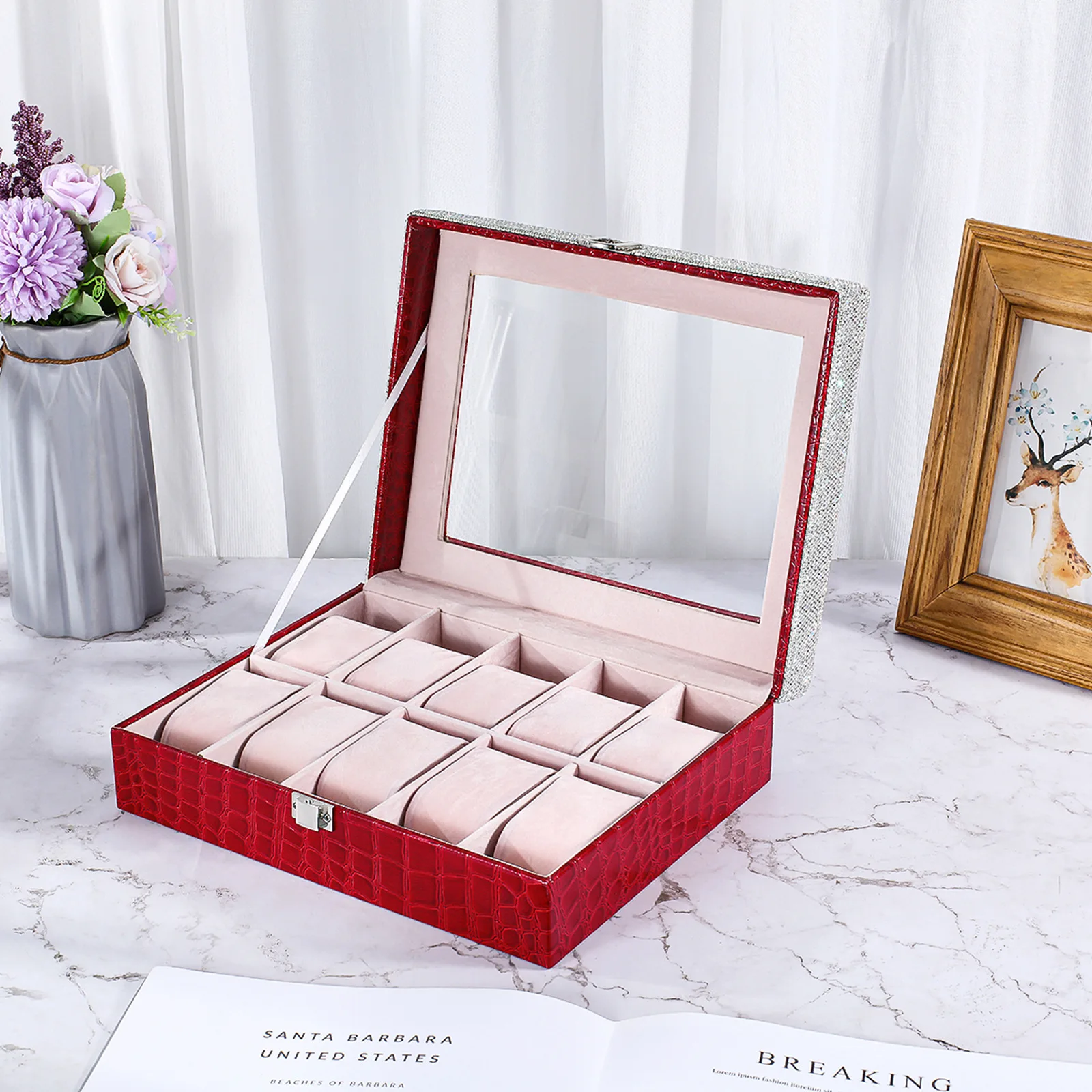 "Watch Box 10 Grids Crocodile Stripe Pattern PU Leather Rhinestones Women Display Watch Storage Organizer Jewelry Package Case" * Buy Now With Free Shipping Just For $90