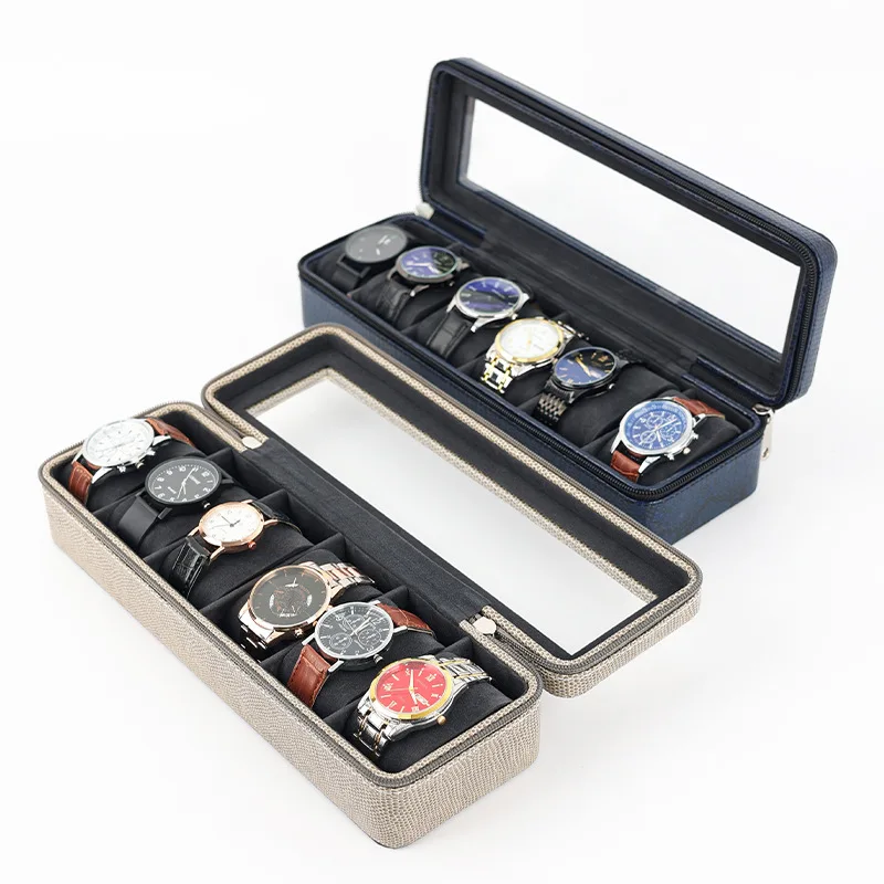 Watch Box High-Grade PU Leather 6-Bit Zipper Watch Storage Box Jewelry Collection Portable for Travel Leather Gift Box Show - Купить с бесплатной доставкой