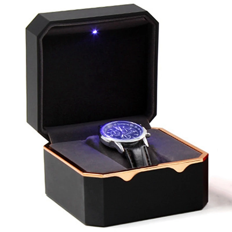"Watch Box With Octagonal Gold Edge With Light, Paint Watch Storage Box, Watch Box, Watch Box" * Buy Now With Free Shipping Just For $11
