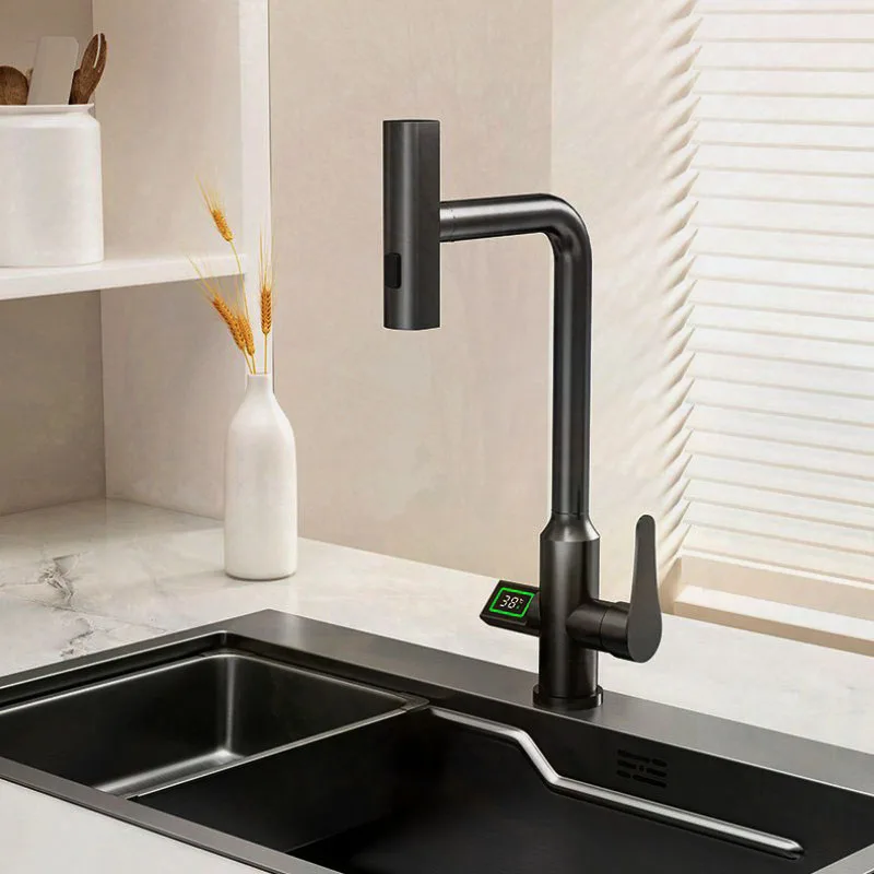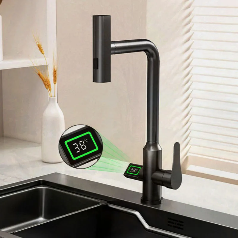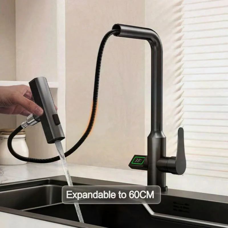 Waterfall Digital Display Temperature Kitchen Faucet Pull Out Sprayer Hot Cold Single Hole Water Sink Mixer Wash Tap For Kitchen - Купить с бесплатной доставкой