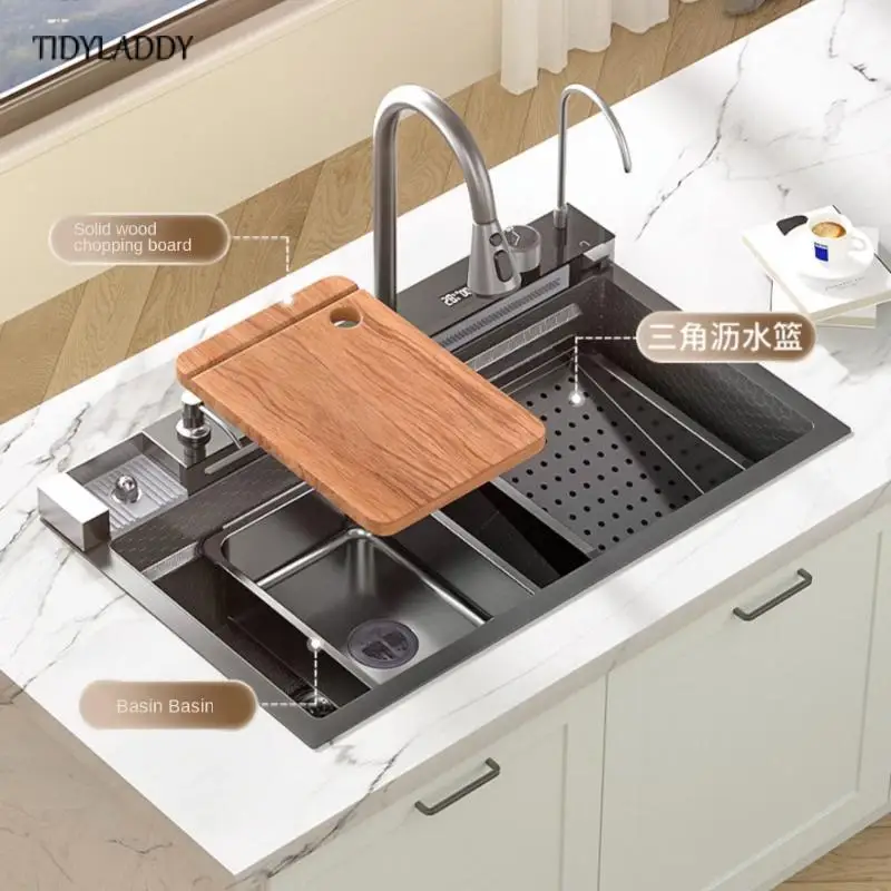 SySmBZSHBHere you can buy Waterfall Kitchen Sink Stainless Steel Large Single Slot Digital Display Wash Basin Multifunctional Pull Out Tap Faucet with free delivery to your post office.
