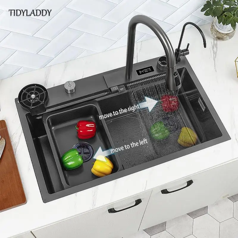 "Waterfall Kitchen Sink Stainless Steel Topmount Sink Large Wash Basin Multifunction Touch Waterfall Faucet Kitchen Accessorie" * Buy Now With Free Shipping Just For $538