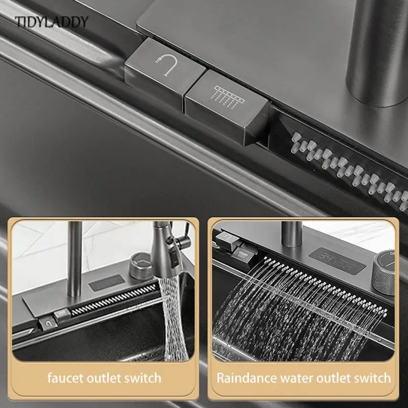 MDXlckDtNHere you can buy Waterfall Kitchen Sink Stainless Steel Topmount Sink Large Wash Basin Multifunction Touch Waterfall Faucet Kitchen Accessorie with free delivery to your post office.