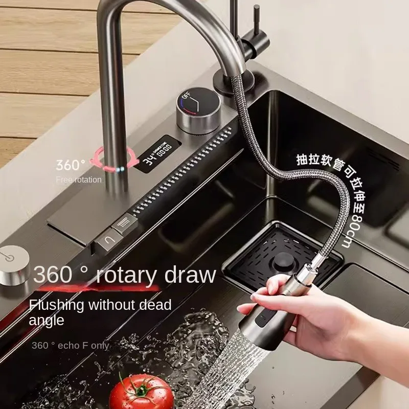 "Waterfall Sink Kitchen Sink Stainless Steel Dishwashing Basin Multi-Function Large Single Tank Kitchen Novel Kitchen Accessories" * Buy Now With Free Shipping Just For $643