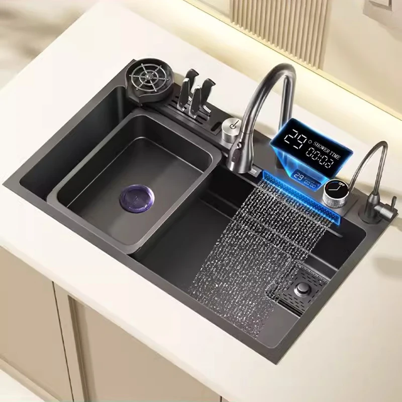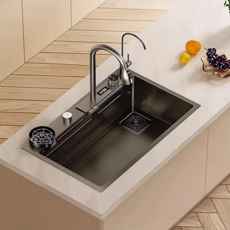bHbyYgoWPHere you can buy Waterfall Sink Kitchen Sink Stainless Steel Dishwashing Basin Multi-Function Large Single Tank Kitchen Novel Kitchen Accessories with free delivery to your post office.