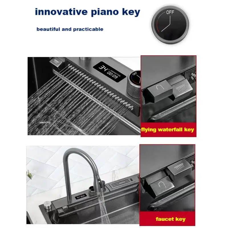 yoCVyNrqHere you can buy Waterfall Sink Kitchen Stainless Steel Topmount Sink Large Single Slot Wash Basin With Multifunction Touch Waterfall Faucet with free delivery to your post office.