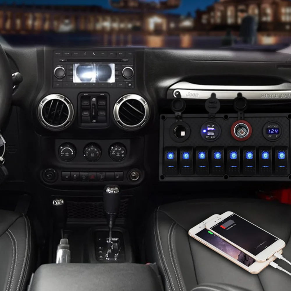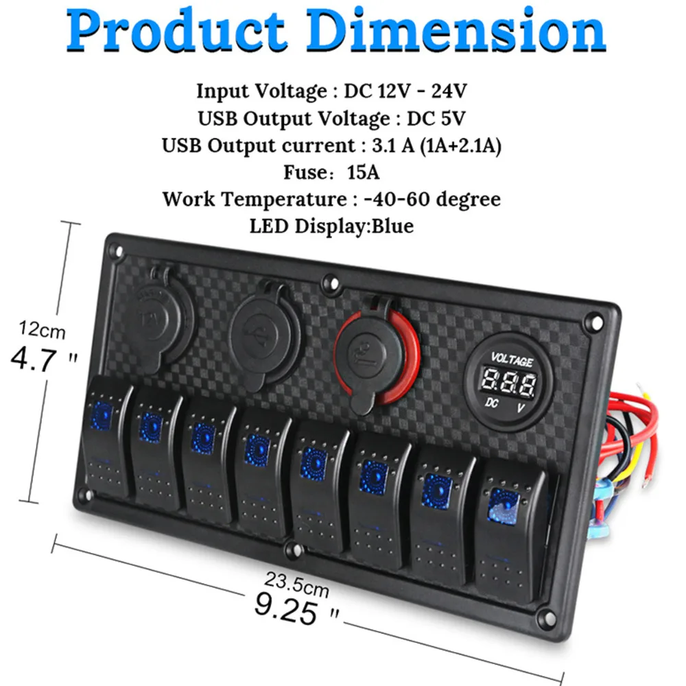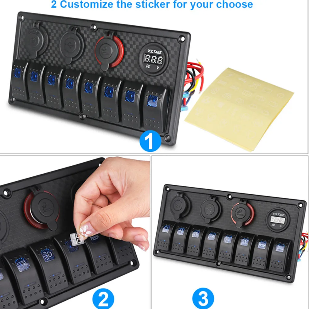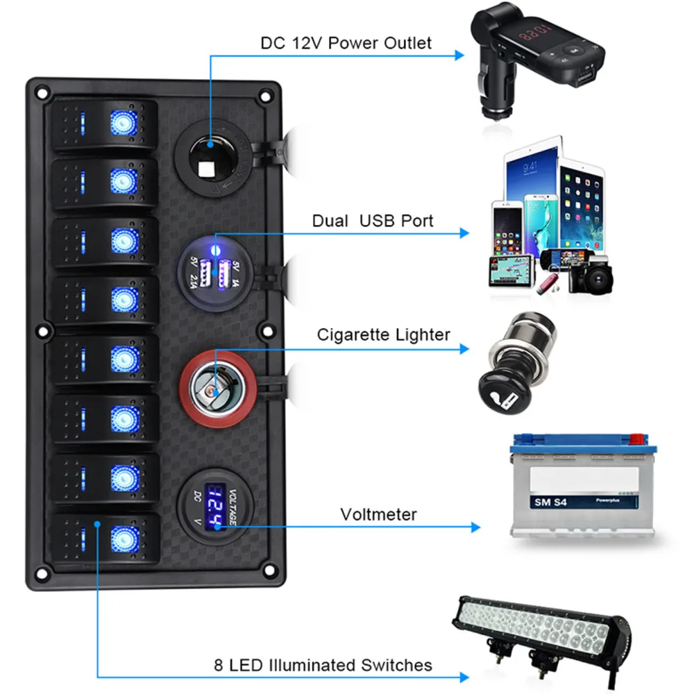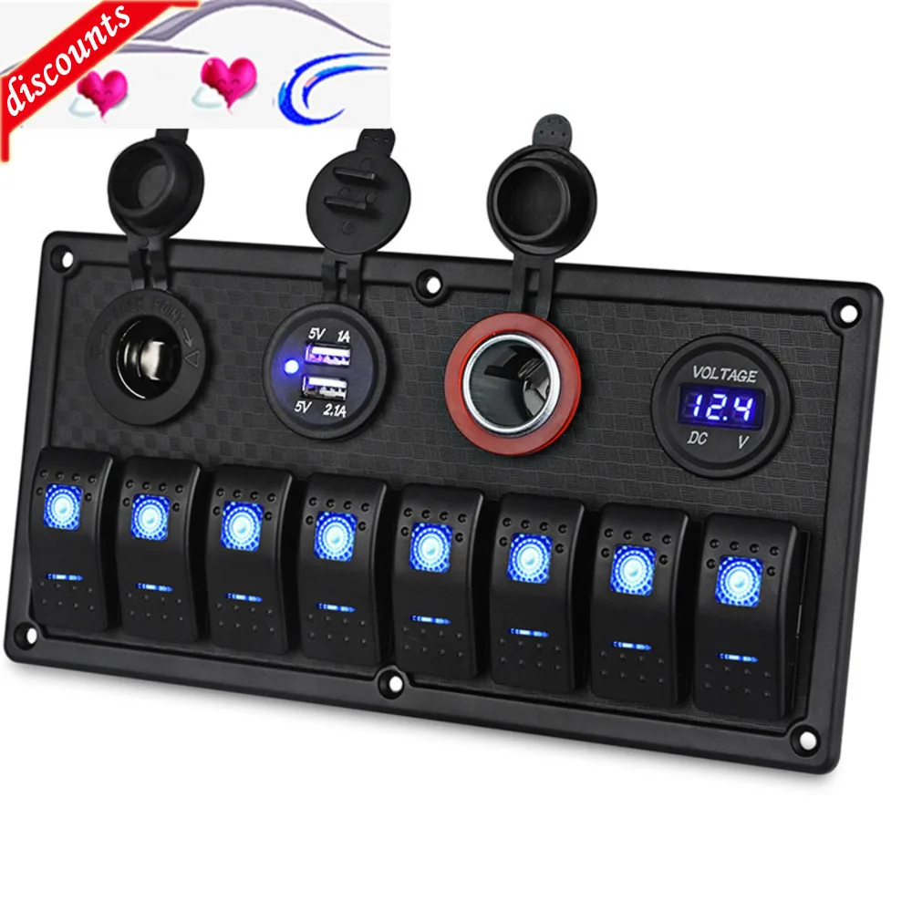 UDGEYAuDHere you can buy Waterproof Boat Marine Switch Panel + USB Power Socket + Dual Cigarette Lighter + Led Voltmeter 8 Gang Car Rocker Switch Panel with free delivery to your post office.