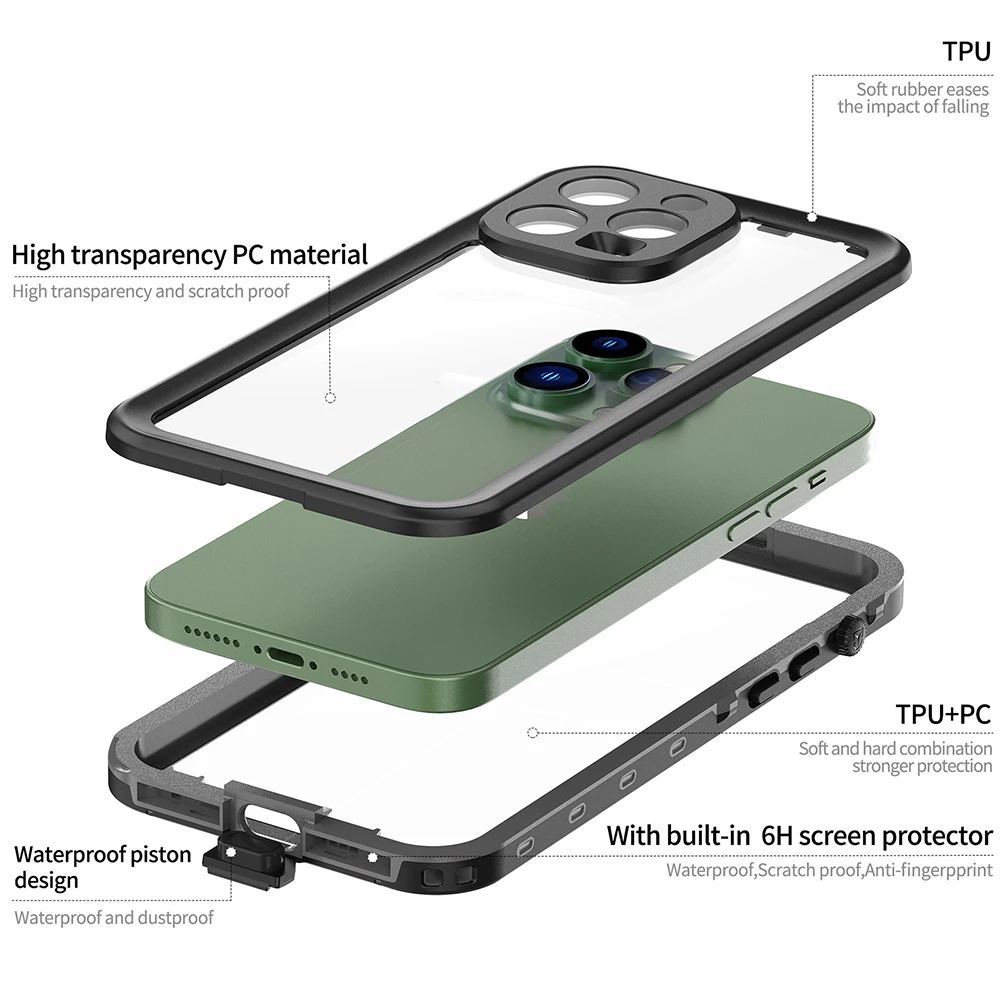 Waterproof Shock Drop Proof Case For iPhone 14 11 12 13 Mini Pro Max Swimming Diving Cover Case Clear Screen Camera Protector - Купить с бесплатной доставкой