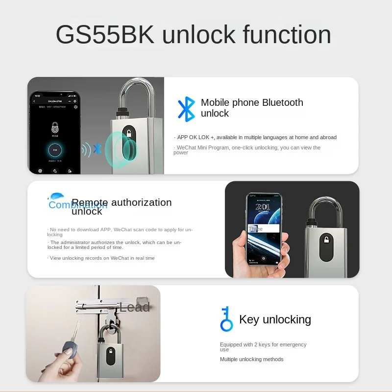 GXanGOruPpHere you can buy Waterproof Smart Padlock with Key Mobile Phone Remote Authorization Unlock Instrument Equipment Toolbox Bluetooth Lock with free delivery to your post office.