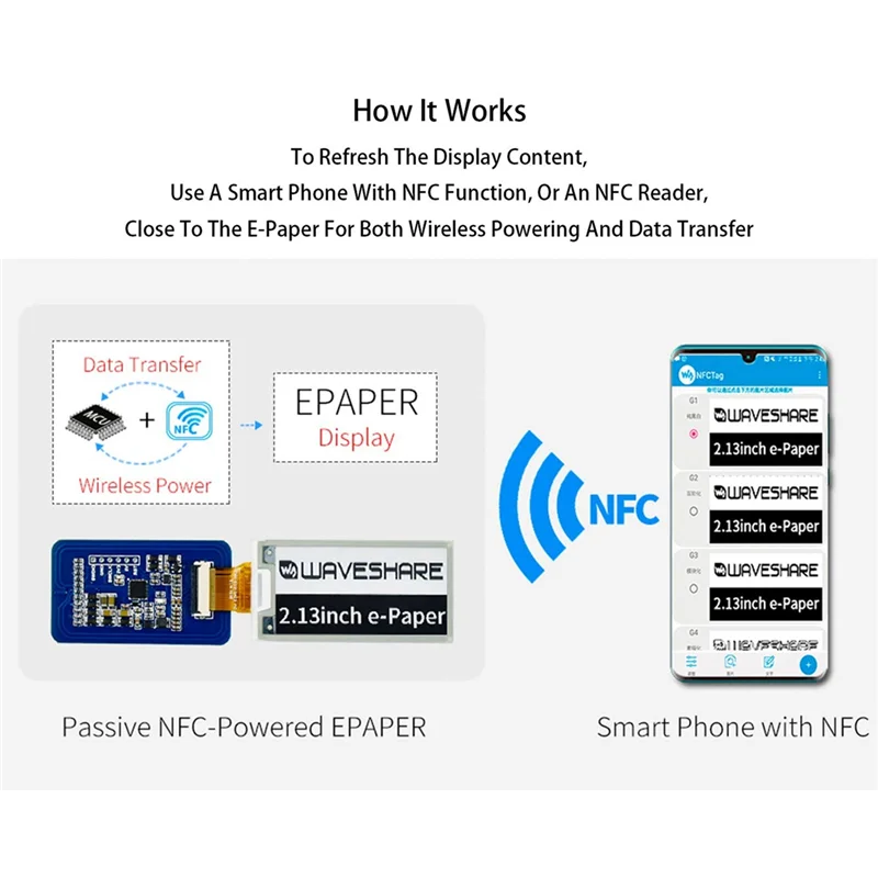 Waveshare 2.13 Inch Wireless NFC-Powered EPaper Eink E Paper E-Ink Display Screen Module for Mobile Android APP, No Battery - Купить с бесплатной доставкой