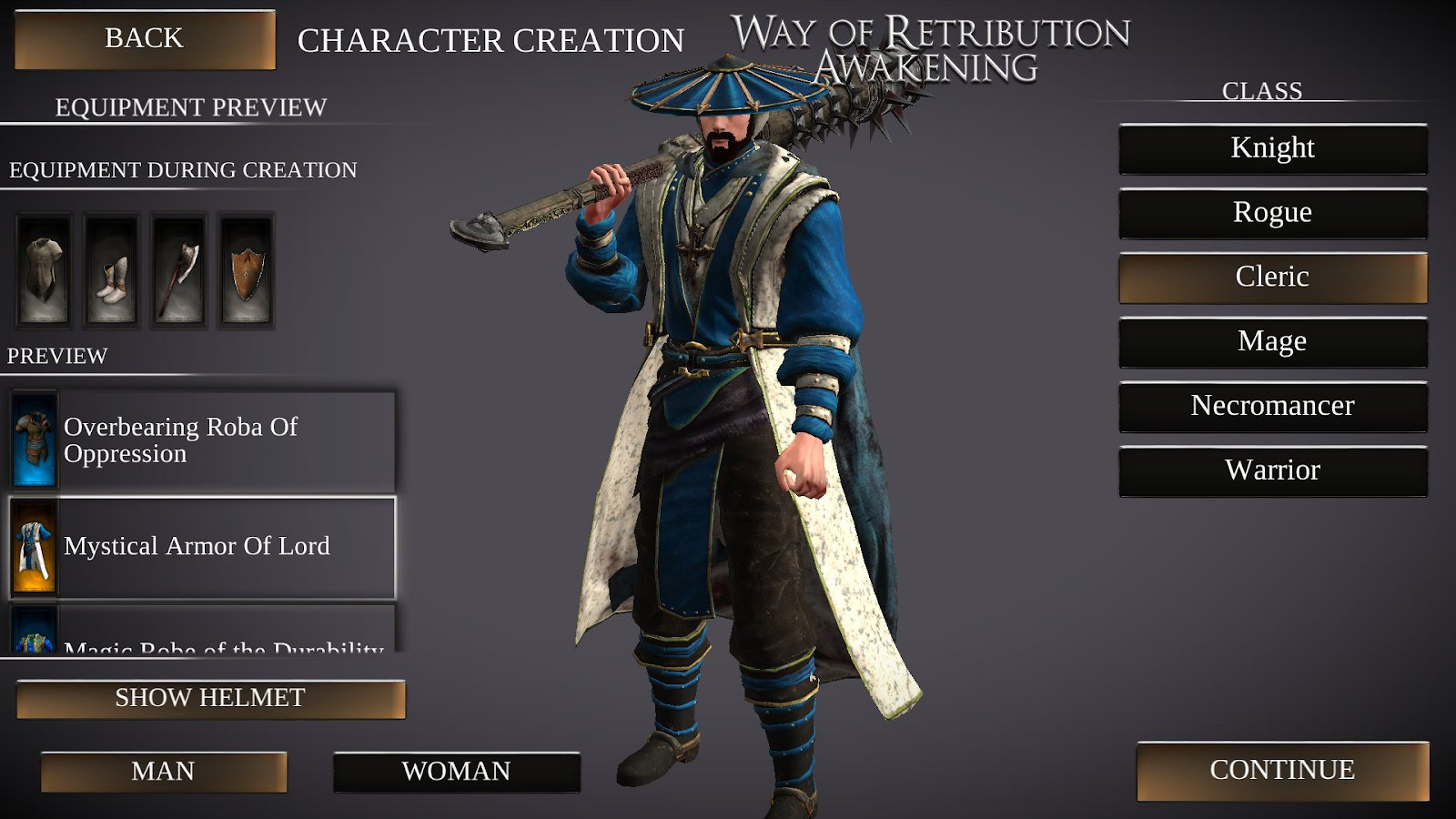 С самого начала вы почувствуете что перед вами настоящая РПГ. Вы сможете полностью создать персонажа, выбрав ему прическу, цвет кожи, бороду и усы, пол и классовую принадлежность. Сразу после этого вы отправитесь в бой, где познакомитесь с основами управления. Для передвижения используйте джойстик, для атаки, парирования, способностей кнопки в правой части экрана.