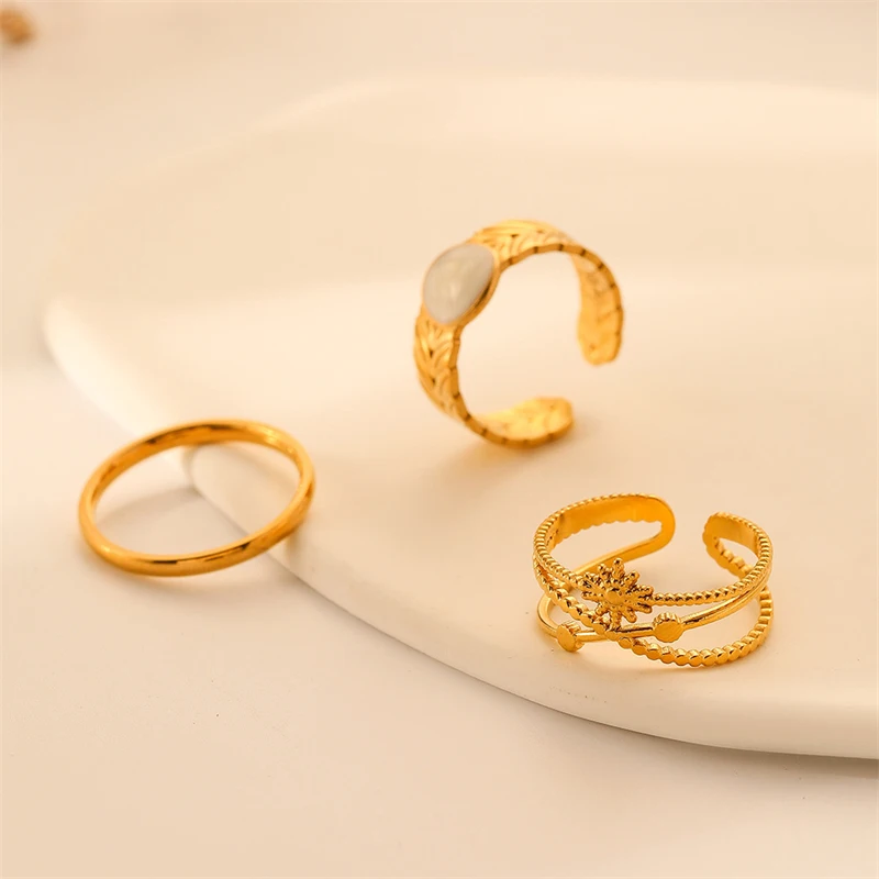«WeSparking 3 Pieces Gold Plated Stainless Steel Rings Set For Women Stacking Finger Jewelry Resizable Romantic Trendy Style» по лучшей цене на рынке! Всего за 5$ (475рублей)