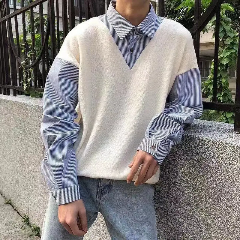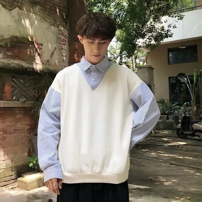 «Wear False Two Pieces Shirts Autumn Color Block Korean Fashion Pullovers Tops Loose Personality Men Women 2022 INS New Korea» по лучшей цене на рынке! Всего за 18$ (1710рублей)