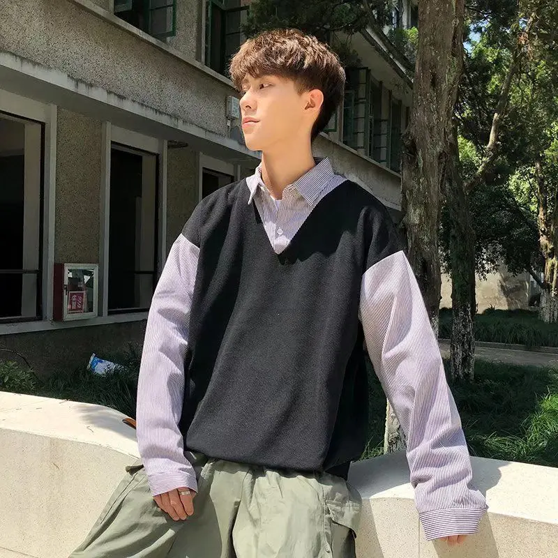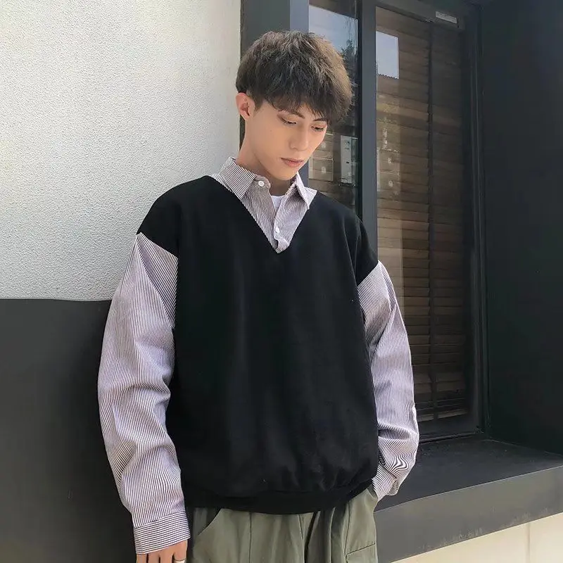 egbHlWBfДолго искали Wear False Two Pieces Shirts Autumn Color Block Korean Fashion Pullovers Tops Loose Personality Men Women 2022 INS New Korea, но не могли найти? Предоставляем вашему вниманию Wear False Two Pieces Shirts Autumn Color Block Korean Fashion Pullovers Tops Loose Personality Men Women 2022 INS New Korea по лучшей цене на рынке!