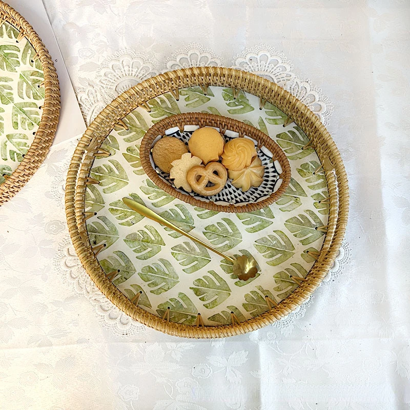 Weaving Rattan Storage Tray Large Round Shellfish Snack Storage Basket Candy Fruit Dessert Plate Tea Tray Home Decoration - Купить с бесплатной доставкой
