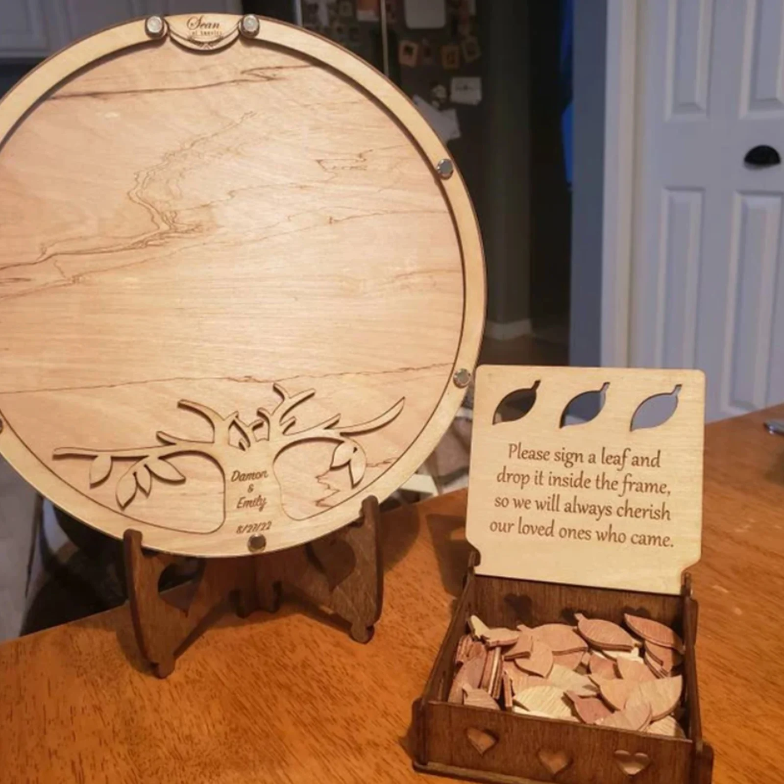 Wedding Guest Book Tree and Leaves Alternative Wedding Decorations Message Book Wooden Round Transparent Blessing Collection Box - Купить с бесплатной доставкой